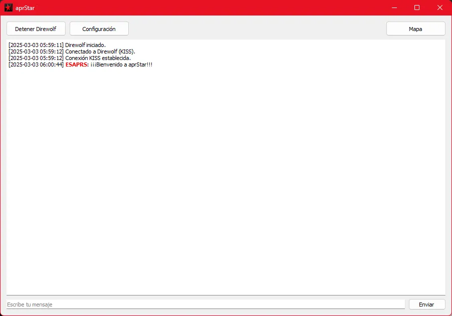 Es una aplicación para el envío y recepción de mensajes de texto que actúa como un puente entre la radio tradicional y la tecnología digital, permitiendo la comunicación APRS mediante tramas AX.25 y el protocolo KISS. Con una interfaz intuitiva y sencilla, aprStar ofrece una forma práctica y potente de enviar y recibir mensajes APRS, tanto en REM como en cualquier otra frecuencia.