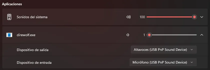 3. Abre el Mezclador de Volumen de Windows y selecciona los dispositivos de audio adecuados para la entrada y la salida.