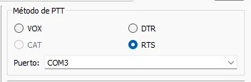 Sin embargo, la mayoría de programas utilizados en modos digitales también ofrecen un tipo de conexión más sencilla, que se basa principalmente en dos funciones: enrutar el audio y activar el PTT. Para el audio se utiliza una tarjeta de sonido, y para el PTT una conexión USB que emplea el protocolo RTS/DTR (siendo RTS el que nos interesa) para cambiar el estado de un relé de encendido/apagado.