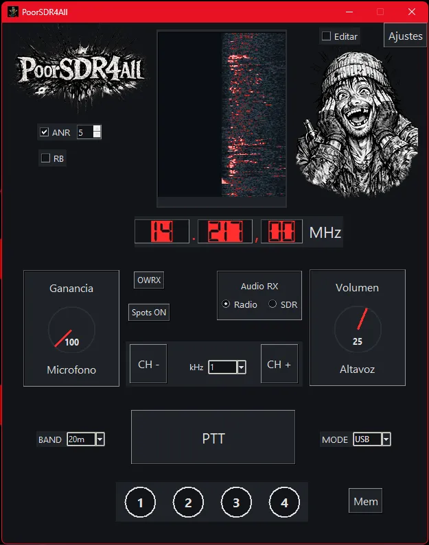 Con PoorSDR4All gestiono toda la cadena de audio desde el PC: recepción, transmisión y niveles, con ANR configurable para limpiar ruido en condiciones difíciles y la posibilidad de personalizar detalles como el roger beep.