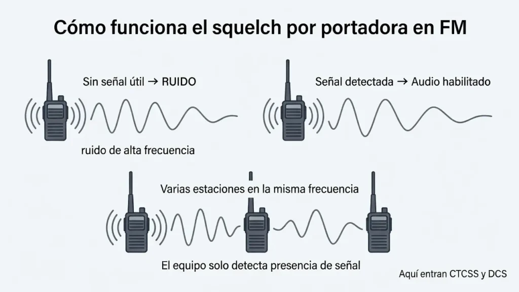 Para que los usuarios puedan aplicar squelch selectivo en recepción y evitar escuchar ruido residual cuando la señal de entrada desaparece.