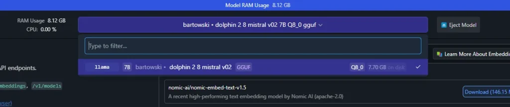 - Haz clic en «Select a model to load» y selecciona el modelo que descargaste previamente (por ejemplo, Llama o Mistral).