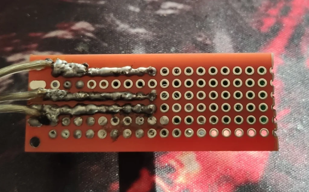 Y así queda el pequeño módulo una vez ensamblado en la protoboard PCB.