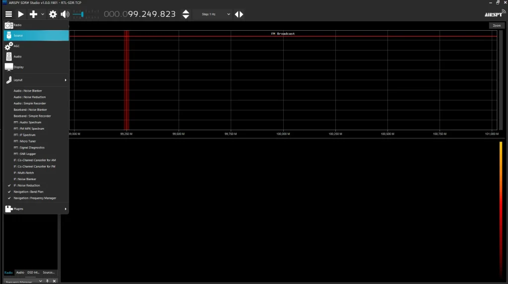Abre SDR# mientras se ejecuta rtl_tcp.